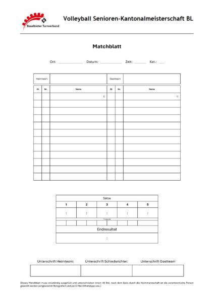 - Die Mannschaften werden jeweils auf dem Matchblatt vor dem Spiel eingetragen. Der Jahrgang jedes Spielers ist ebenfalls einzutragen.